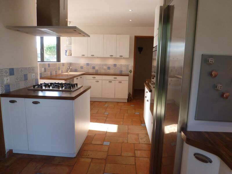 La cuisine moderne et fonctionnelle avec des équipements de qualité vous facilitera votre séjour. En plus de la salle à manger indépendante, le salon donnant sur le patio et la piscine, sera aussi apprécié en hivers grâce à sa cheminée. Le sol en tomettes est chauffant. Les enfants petits ou grands auront plaisir à s'approprier la mezzanine pour se retrouver.
